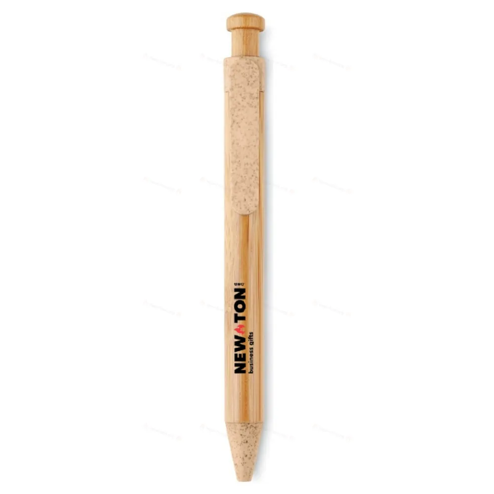 Ручка шариковая нажимная с бамбуковым корпусом и волокнами пшеницы/соломы 50% и ABS 50% деталей. Синие чернила. FSC®-certified | FSC 100%, N5.7, FSC-C213206