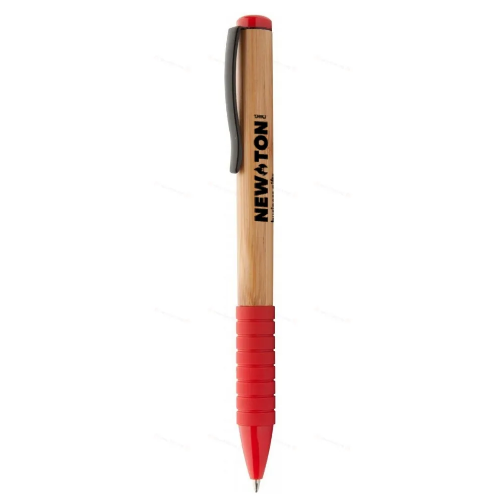 Бамбуковая ручка-роллер с металлическим зажимом, цветным наконечником и верхом, а также резиновым упором под цвет. С синим стержнем.