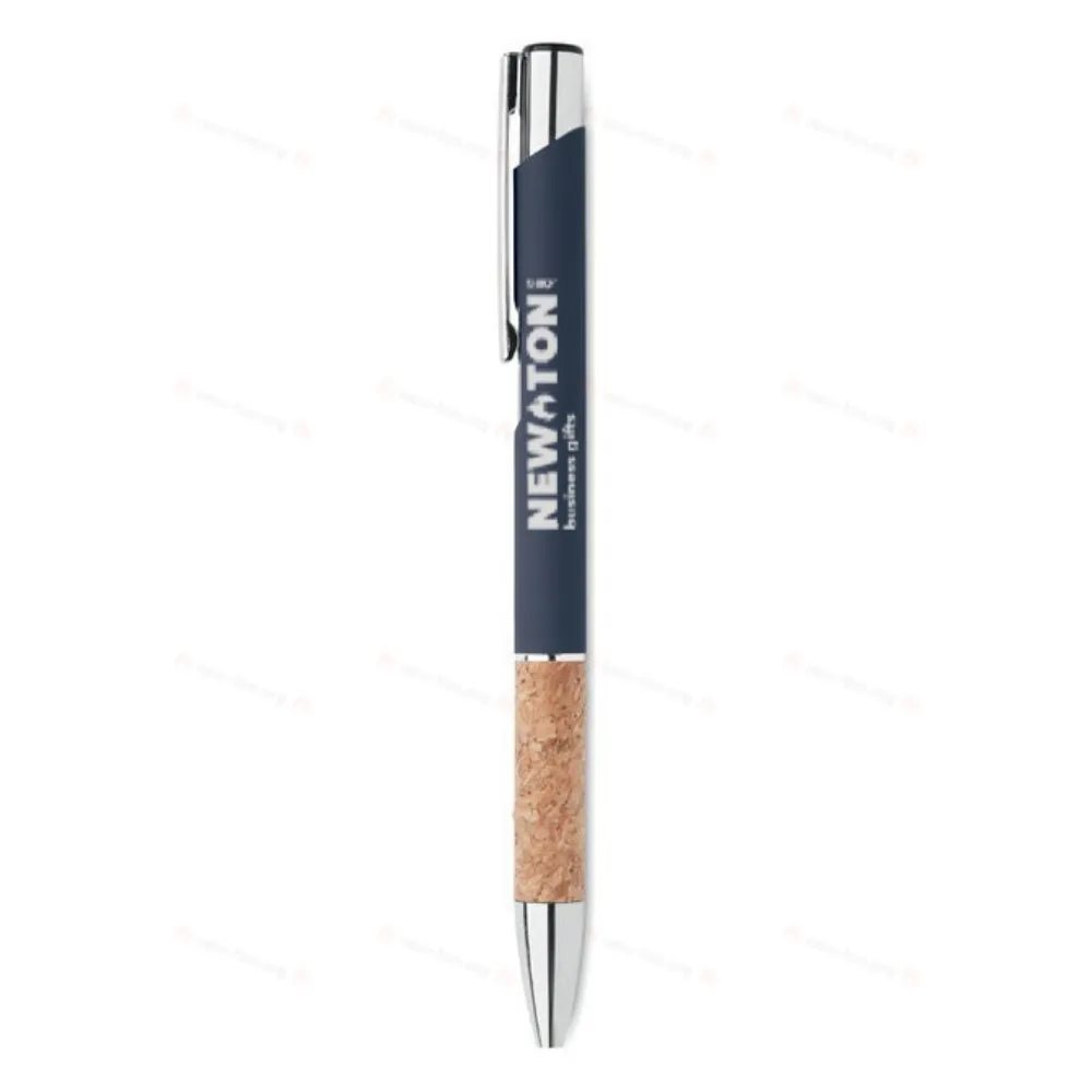 Кнопочная ручка из алюминия и пробки. Синие чернила.