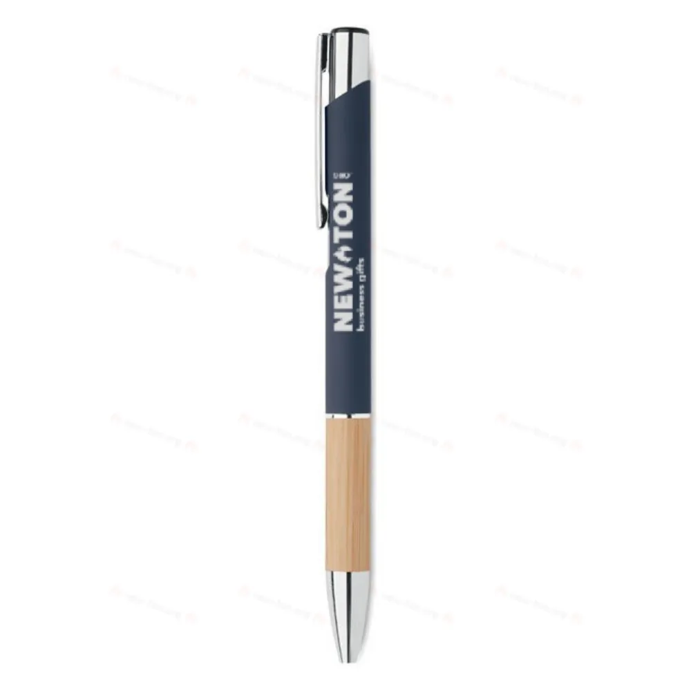 Кнопочная ручка из алюминия и бамбука. Синие чернила.