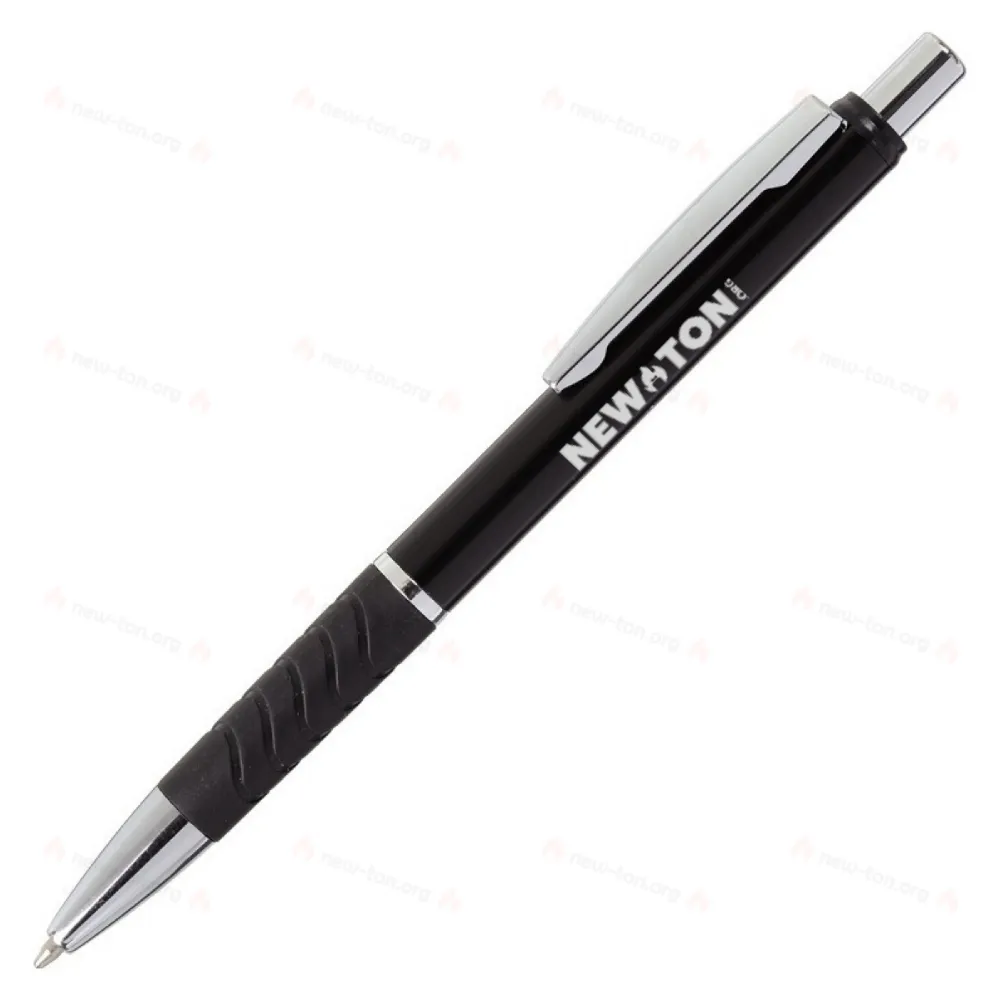 Рекламная блестящая алюминиевая шариковая ручка с резиной, металлическим зажимом и наконечником. Поставляется с синим стержнем. Возможна полноцветная печать (УФ).