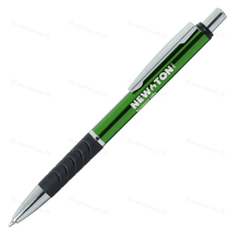 Рекламная блестящая алюминиевая шариковая ручка с резиной, металлическим зажимом и наконечником. Поставляется с синим стержнем. Возможна полноцветная печать (УФ).