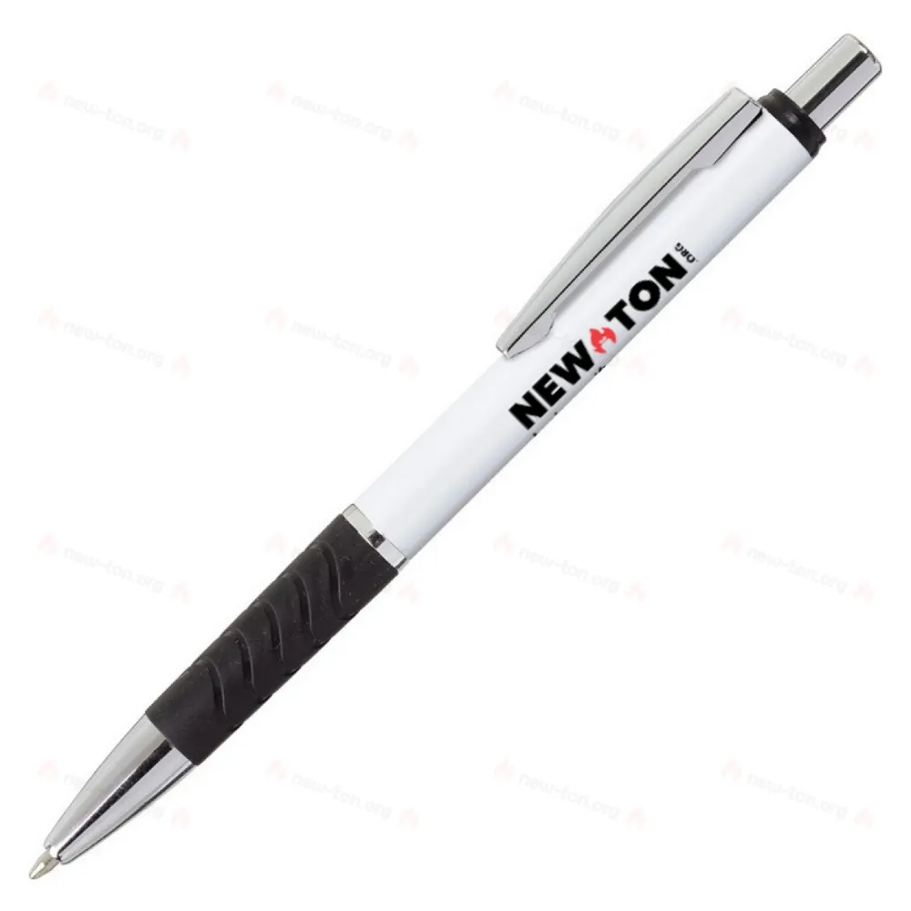 Рекламная блестящая алюминиевая шариковая ручка с резиной, металлическим зажимом и наконечником. Поставляется с синим стержнем. Возможна полноцветная печать (УФ).