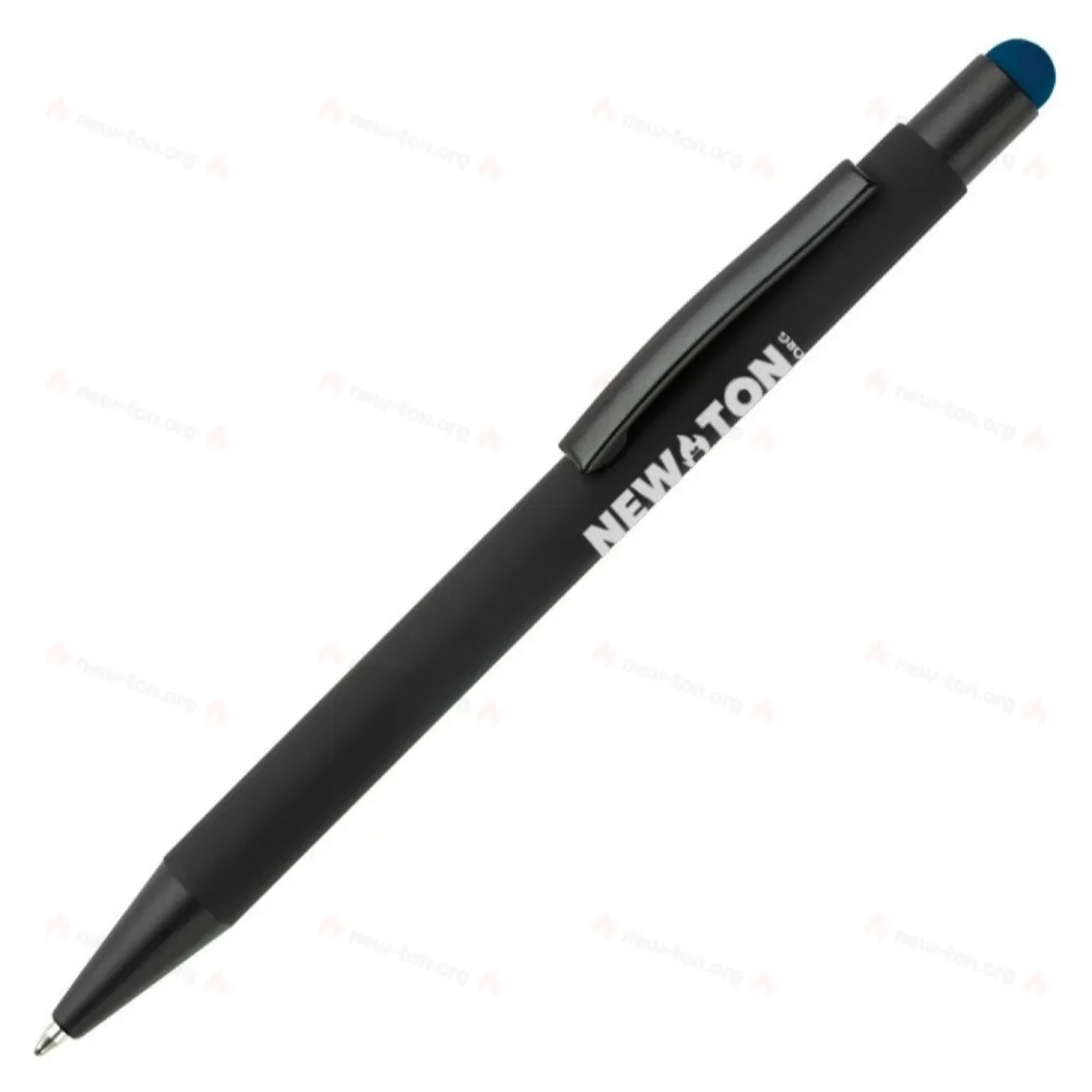 Эту элегантную металлическую шариковую ручку с черной окантовкой можно выгравировать лазером, а логотип будет в цвете кончика стилуса. Цвет письма: синий.