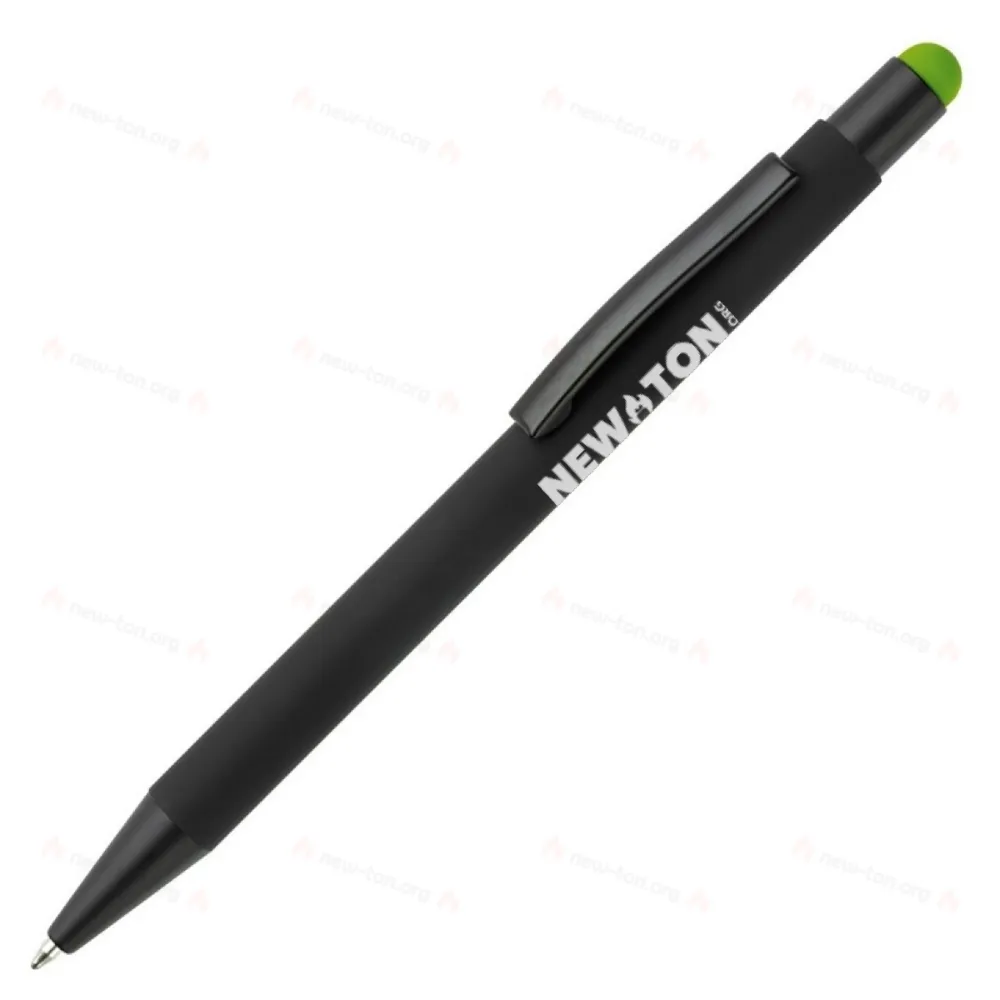Эту элегантную металлическую шариковую ручку с черной окантовкой можно выгравировать лазером, а логотип будет в цвете кончика стилуса. Цвет письма: синий.