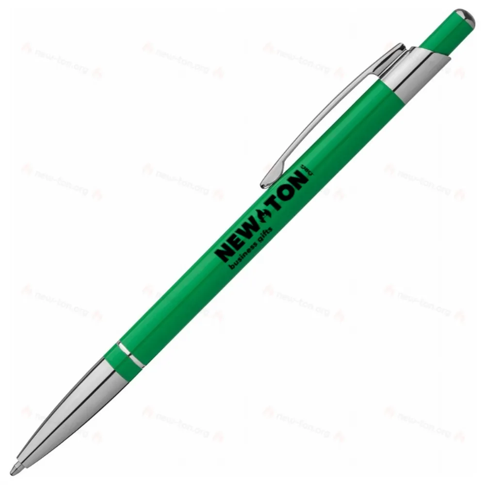 Классическая ручка из металла. Имеет синий стержень. Логотип может быть помещен под клипом.
