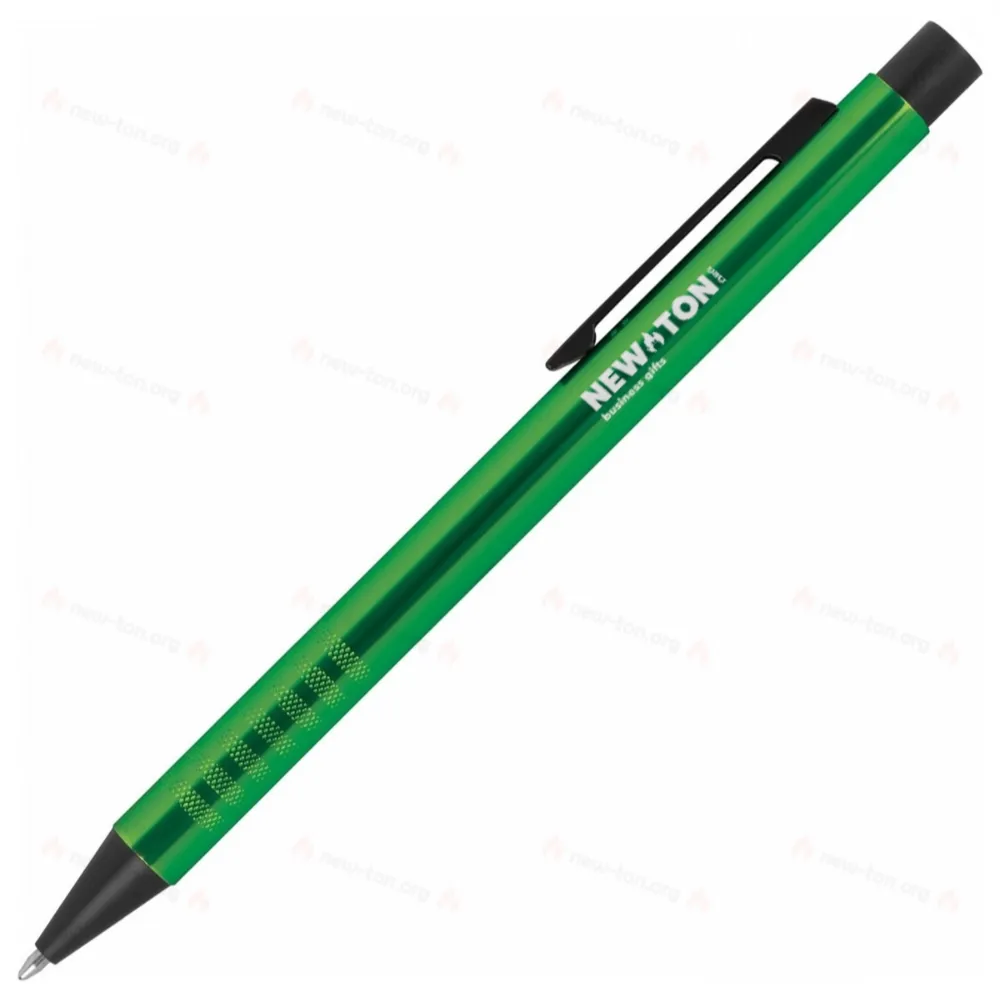 Металлическая ручка с синими чернилами и украшением на корпусе.