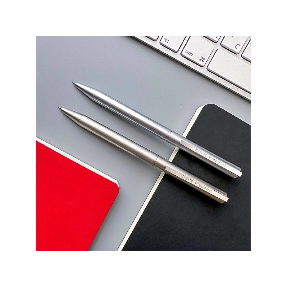 Шариковая ручка из коллекции «Bergamo» в металлическом корпусе. Ручка автоматическая с легким поворотным механизмом подачи стержня. Надежный пишущий узел d 0,7 мм (от швейцарского производителя Premec) гарантирует высокое качество также, как и пигментные чернила Dokumental (Германия). Благодаря им писать ручкой «Bergamo» от Bruno Visconti одно удовольствие – она мягко скользит по поверхности бумаги, оставляя ровную, четкую линию.