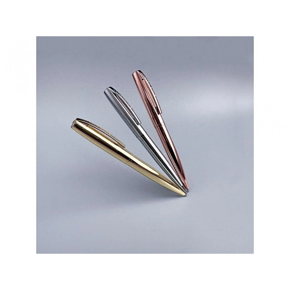 Стильная и строгая автоматическая шариковая ручка «Sienna». Металлический корпус выполнен в цвете розовое золото. Качественные чернила Dokumental (Германия) и пишущий узел Premec (Швейцария) обеспечивают мягкое и приятное письмо. Отличный вариант ручки как для повседневной работы, так и для корпоративного подарка!