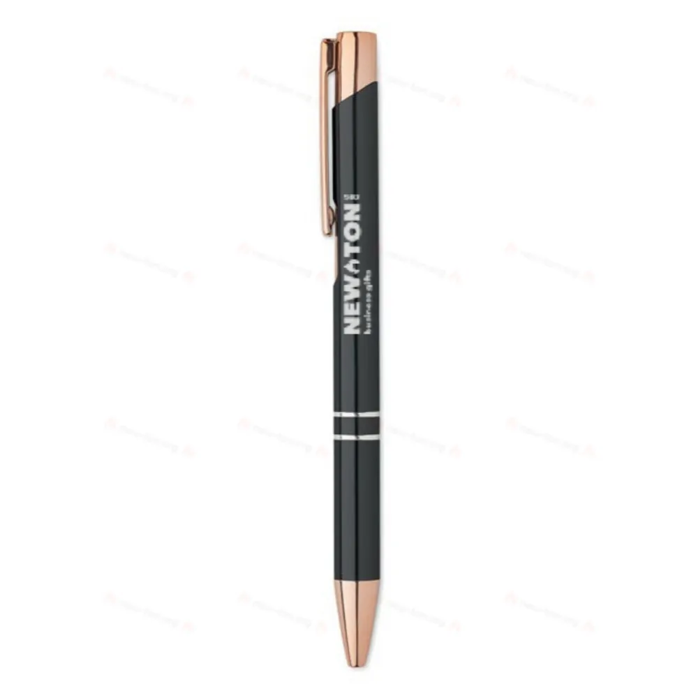 Кнопочная шариковая ручка из переработанного алюминия с деталями из розового золота. Синие чернила.
