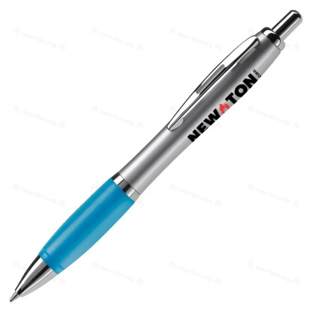 Шариковая ручка серебристого цвета с металлическим зажимом, стандарт: синие чернила.