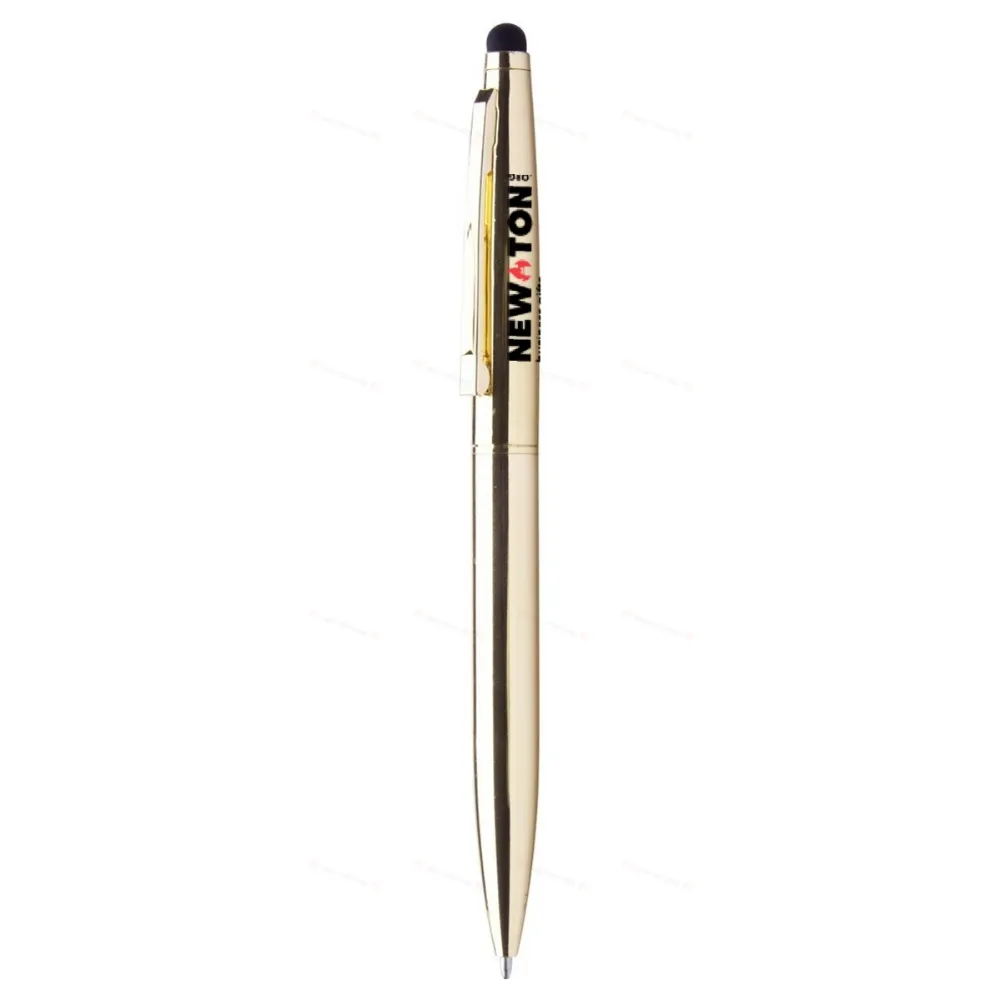 Металлическая шариковая ручка и ручка для сенсорного экрана с блестящей металлической отделкой. С синим стержнем.