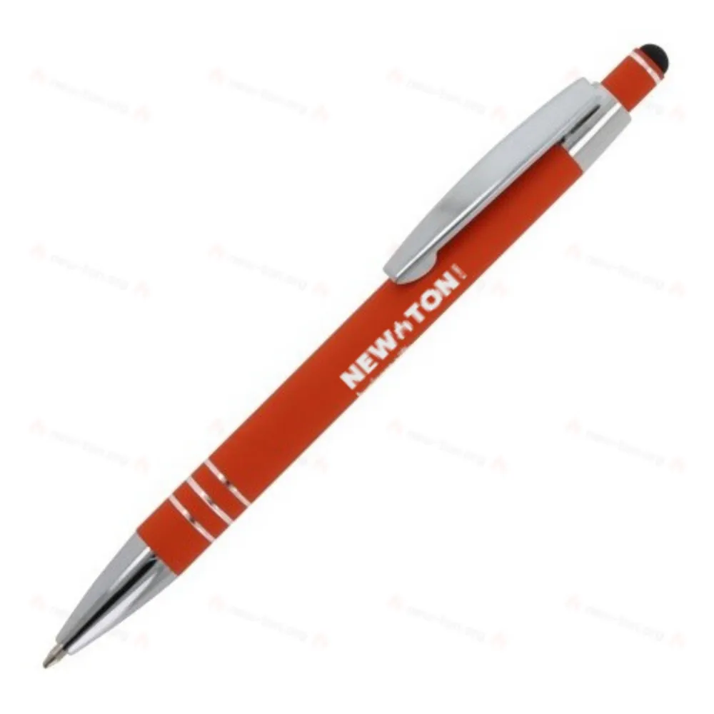 Алюминиевая шариковая ручка с элегантным покрытием soft-touch и стилусом. С прочным металлическим зажимом и наконечником. Цвет надписи: синий.