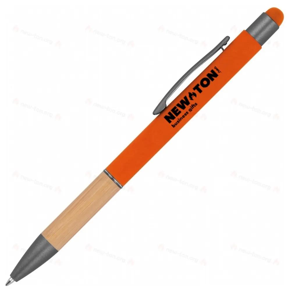 Металлическая шариковая ручка с синими чернилами, наконечником для сенсорного экрана и зоной захвата из бамбука.