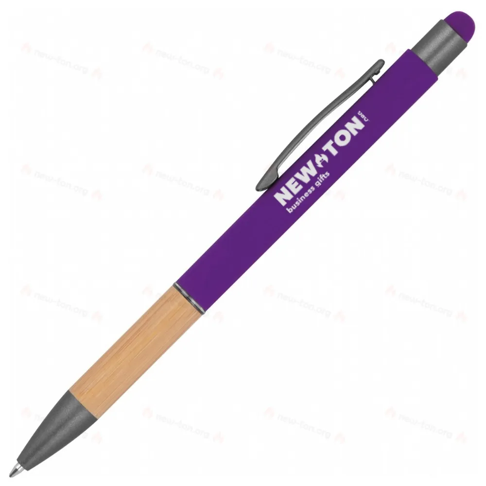Металлическая шариковая ручка с синими чернилами, наконечником для сенсорного экрана и зоной захвата из бамбука.