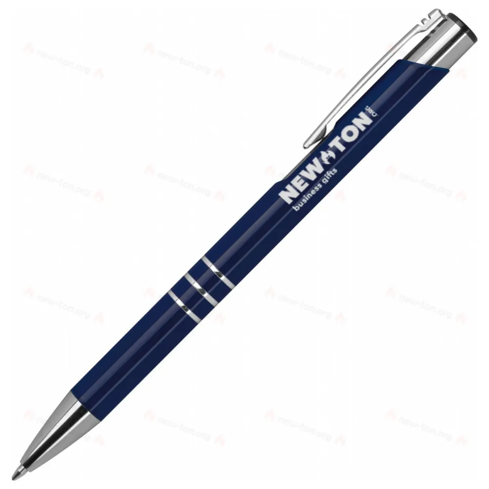Классическая шариковая ручка из металла с хромированными деталями и тонким зажимом. Шариковая ручка с большим запасом синих чернил.