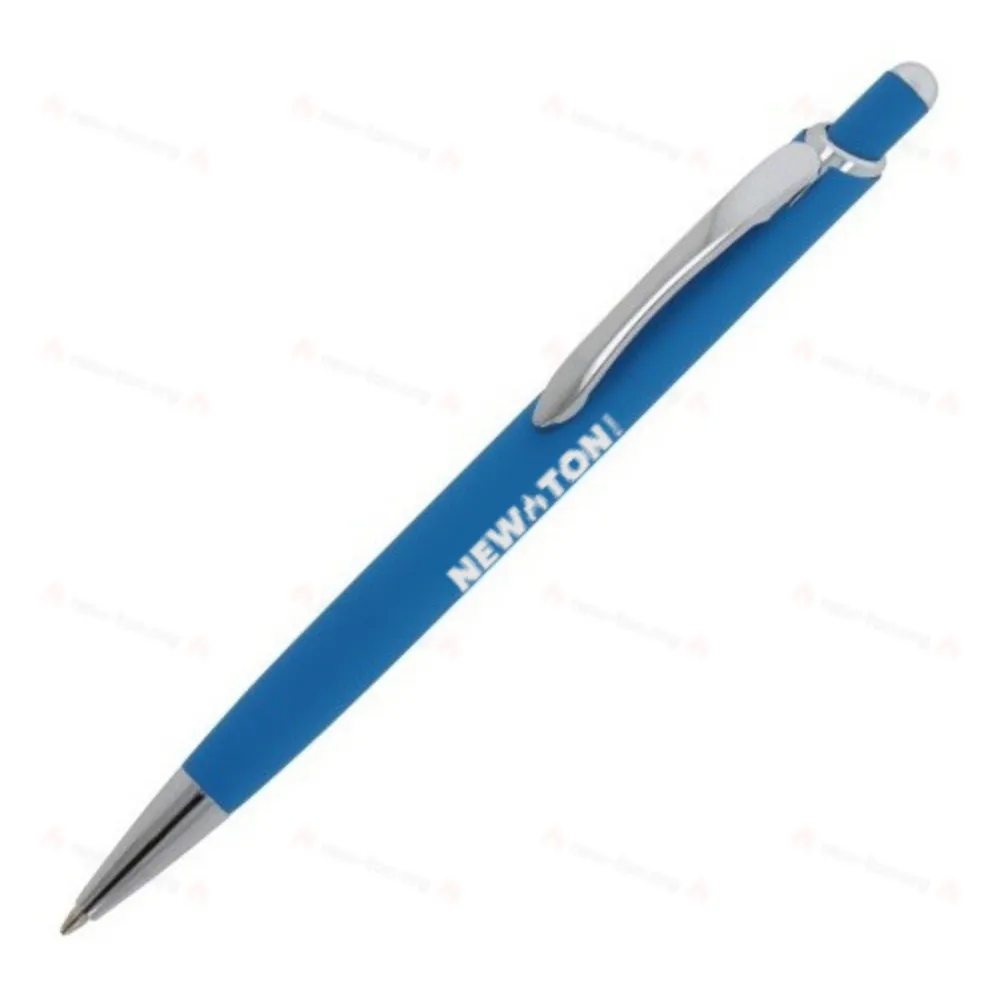 Алюминиевая шариковая ручка с элегантным покрытием soft-touch. С прочным металлическим зажимом и наконечником. Цвет надписи: синий.
