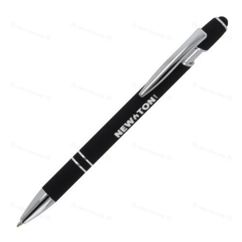 Алюминиевая шариковая ручка с элегантным покрытием soft-touch и стилусом. С прочным металлическим зажимом и наконечником. Цвет надписи: синий.
