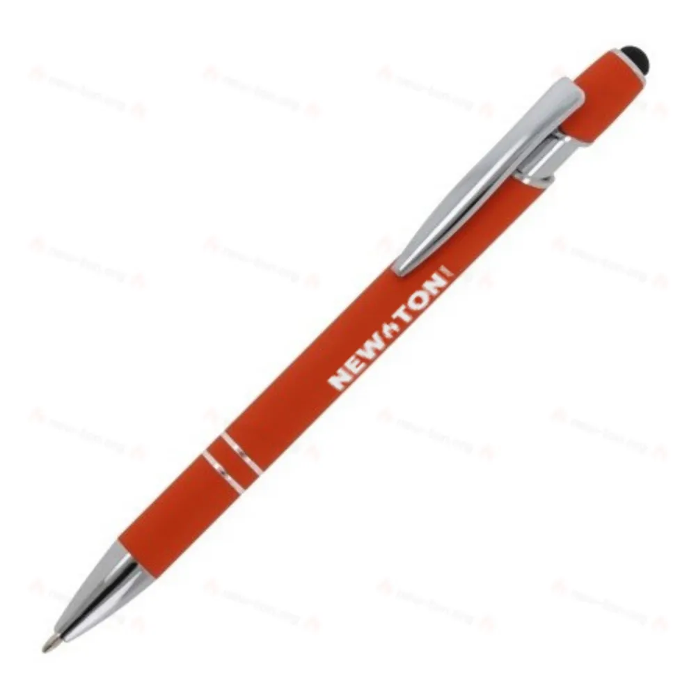 Алюминиевая шариковая ручка с элегантным покрытием soft-touch и стилусом. С прочным металлическим зажимом и наконечником. Цвет надписи: синий.