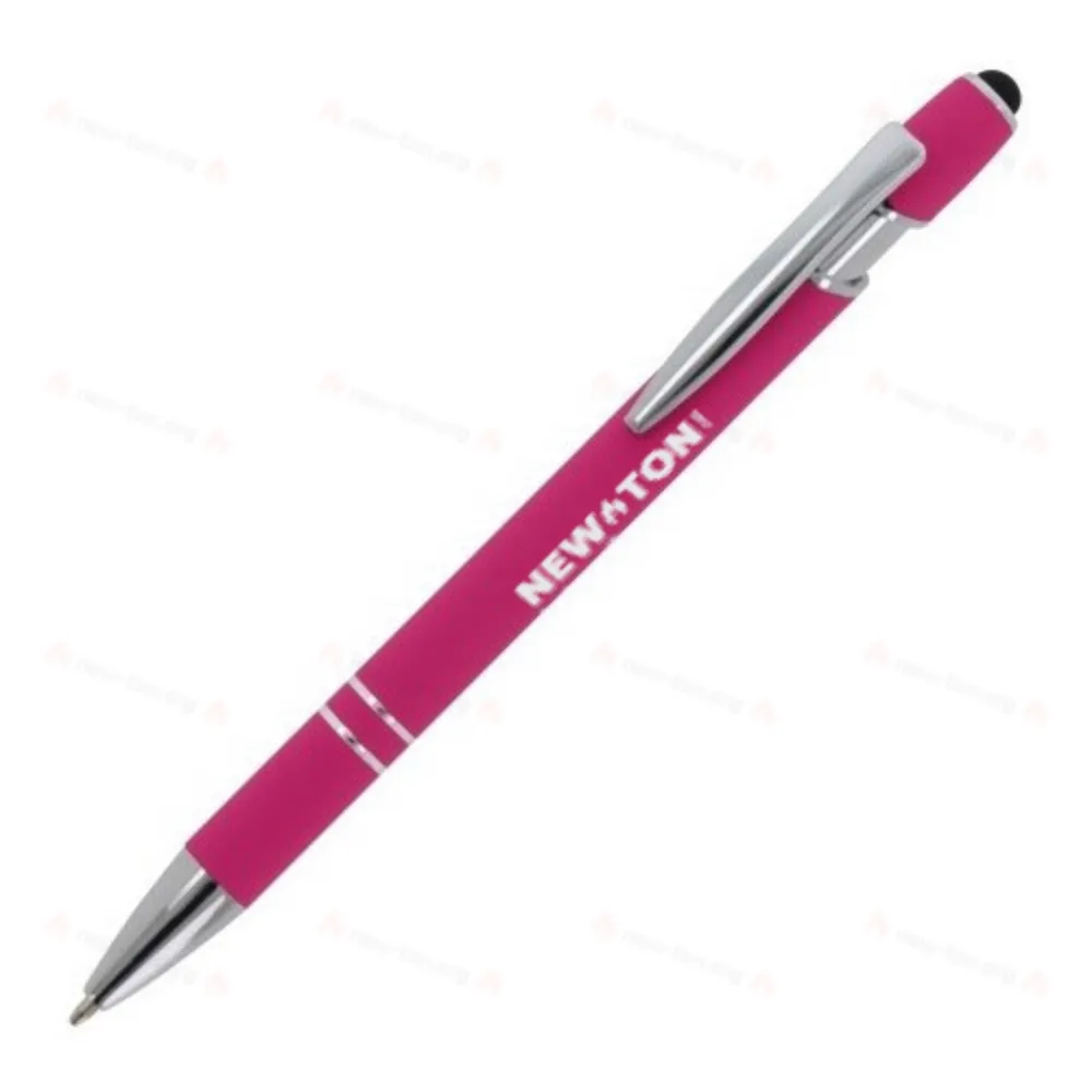 Алюминиевая шариковая ручка с элегантным покрытием soft-touch и стилусом. С прочным металлическим зажимом и наконечником. Цвет надписи: синий.