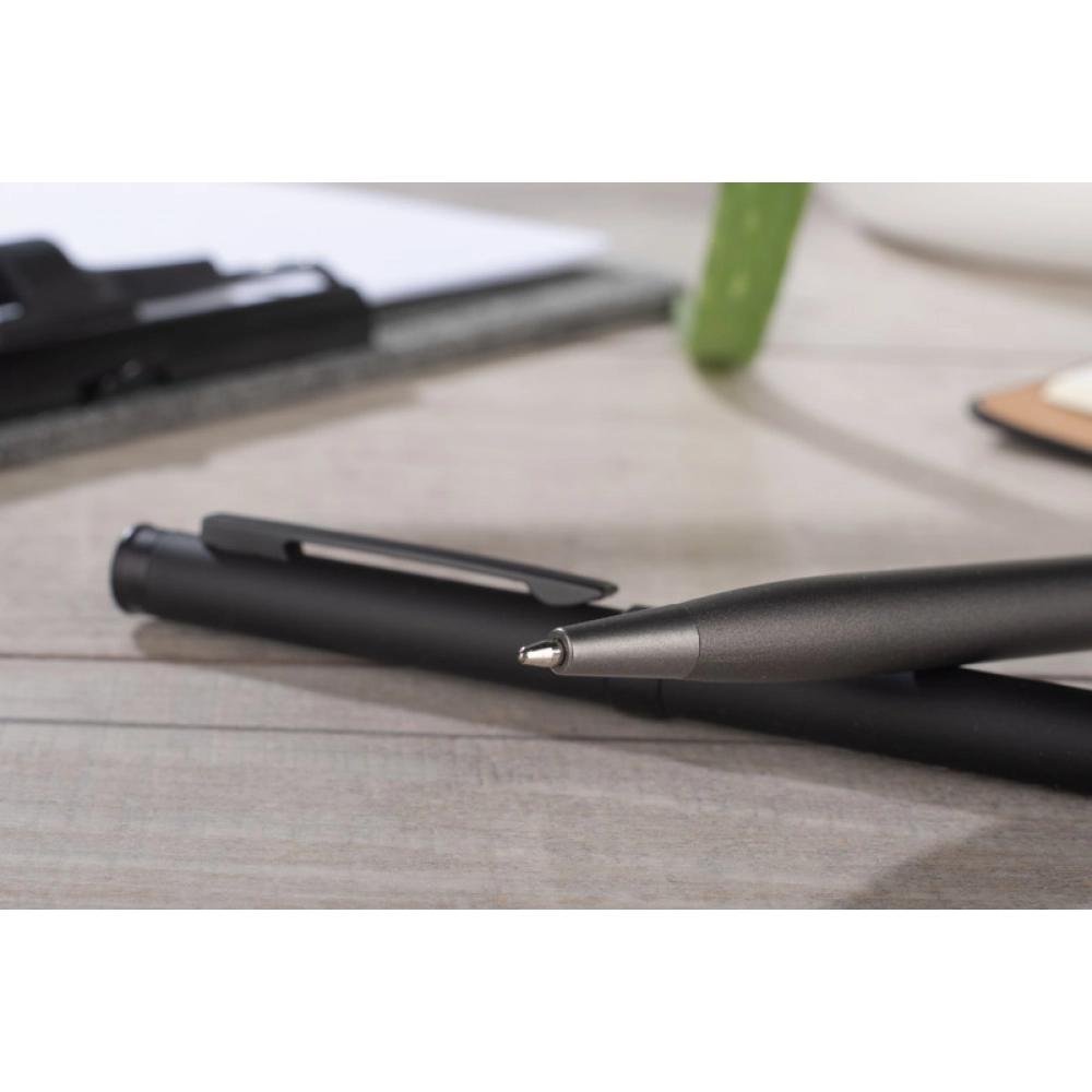 TASI — это легкая металлическая ручка с матовым покрытием и изящным дизайном. Ее мягкое на ощупь покрытие обеспечивает комфортное использование. Механизм поворота добавляет функциональности и удобства. Идеально подходит для персонализации в качестве стильного рекламного аксессуара.