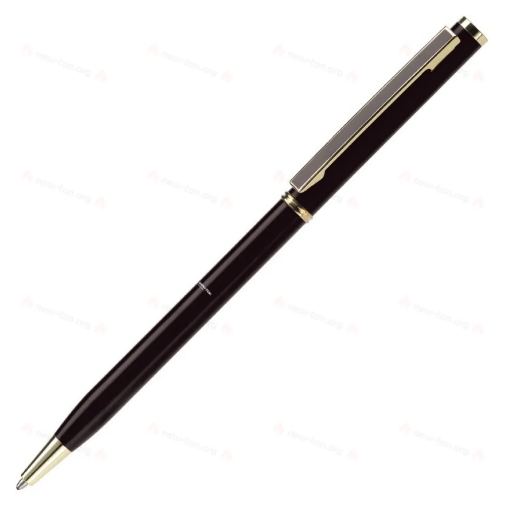 Тонкая металлическая шариковая ручка. Цвет матовый с золотистыми деталями. Поставляется с металлическим держателем чернил (стандарт: синие чернила). Возможна лазерная (золотая) гравировка.