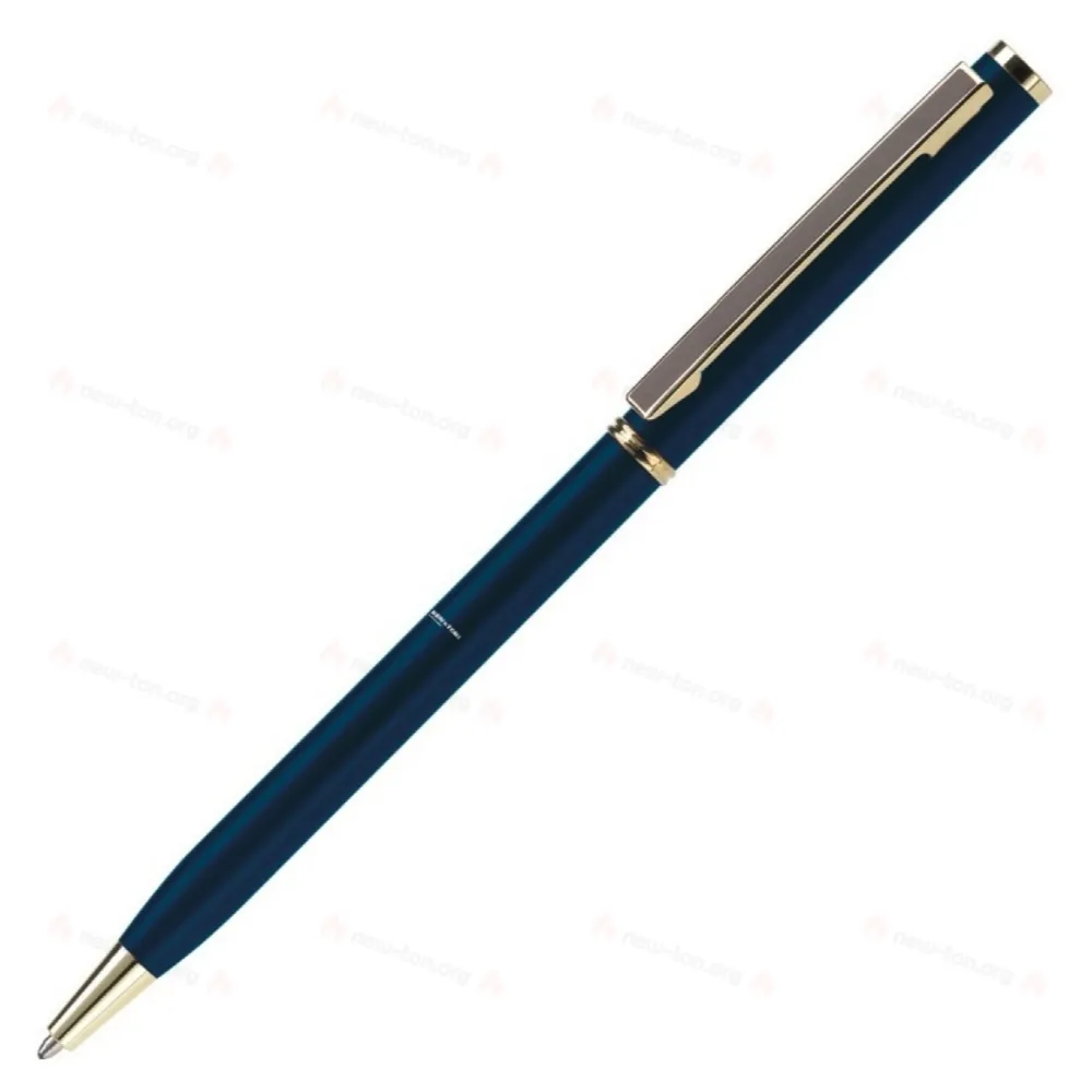 Тонкая металлическая шариковая ручка. Цвет матовый с золотистыми деталями. Поставляется с металлическим держателем чернил (стандарт: синие чернила). Возможна лазерная (золотая) гравировка.
