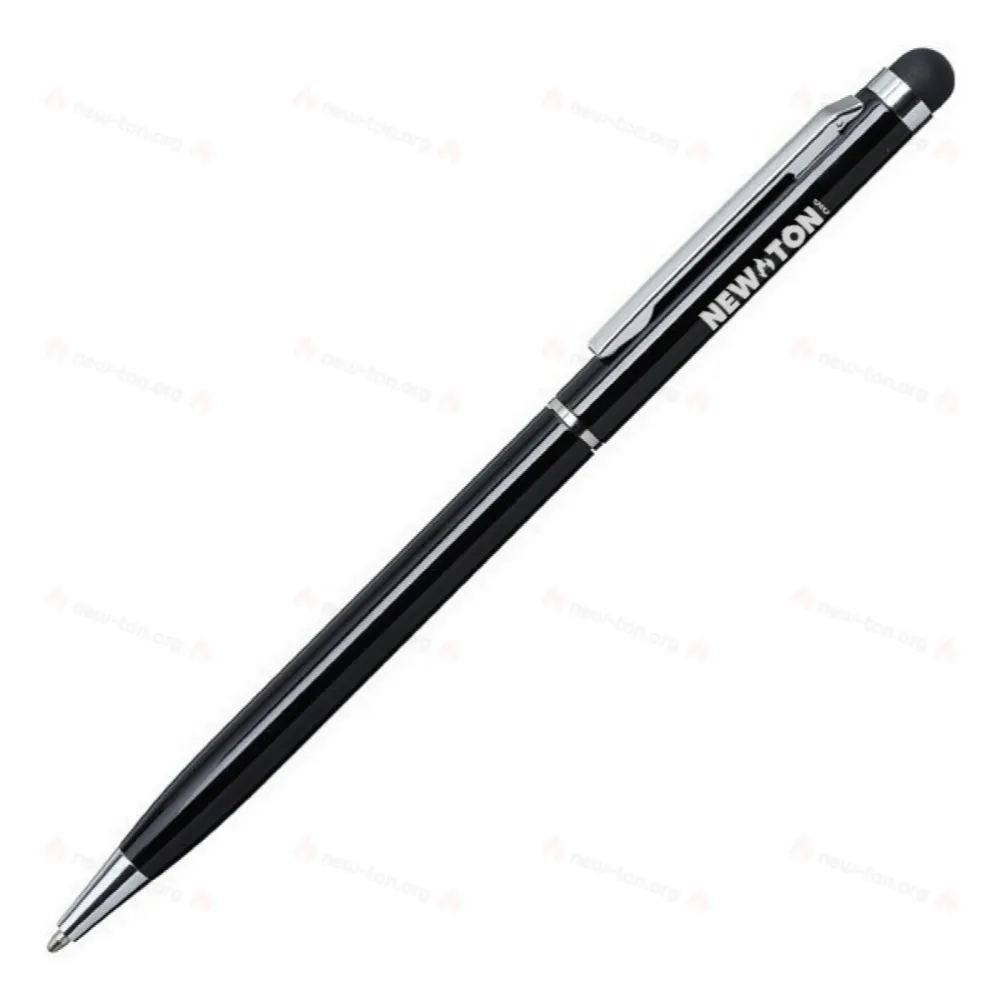 Алюминиевая шариковая ручка с наконечником, предназначенным для работы с устройствами с сенсорным экраном. С поворотным механизмом. Синие чернила.