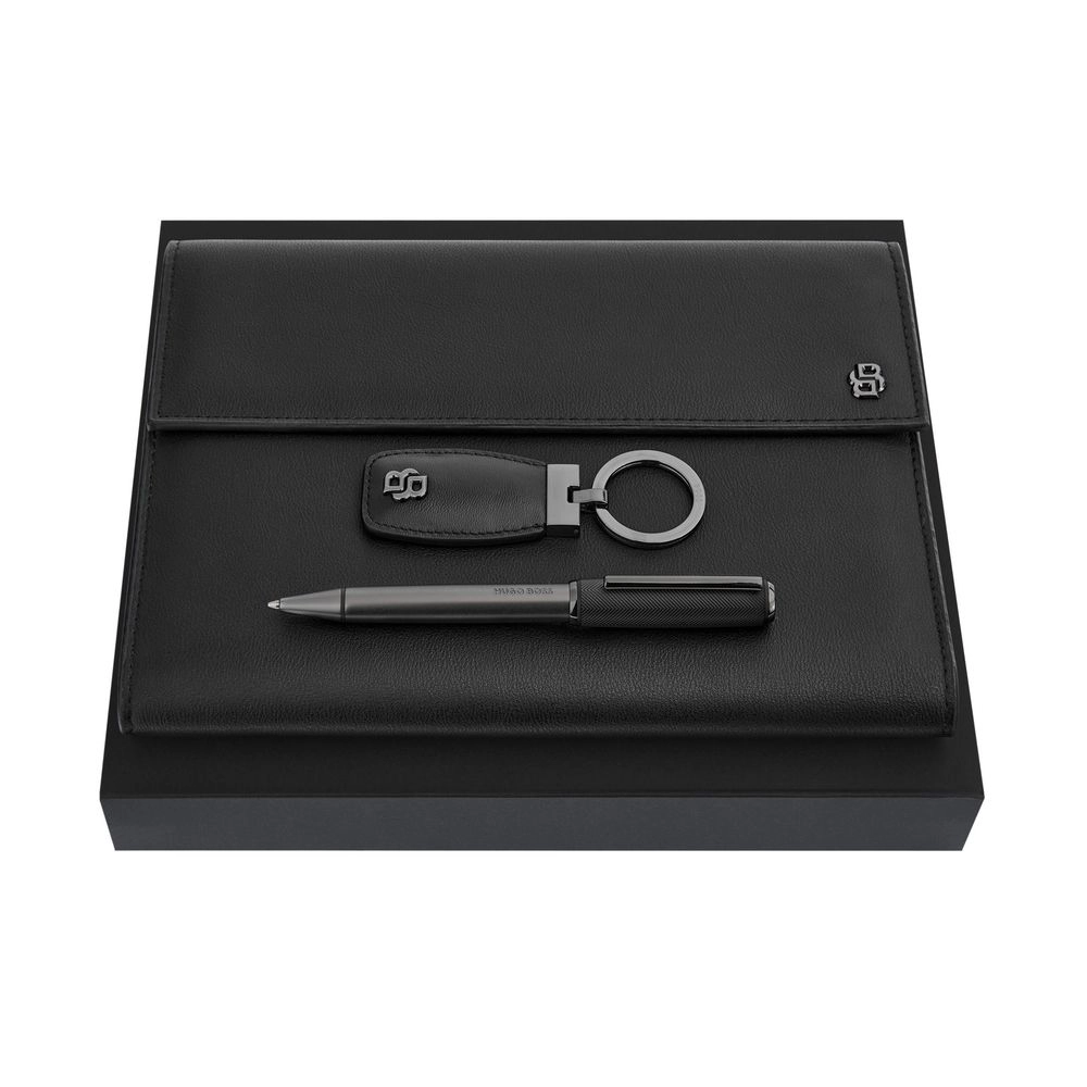 Набор HUGO BOSS Черный и Серебряный (шариковая ручка, папка A5 и брелок)