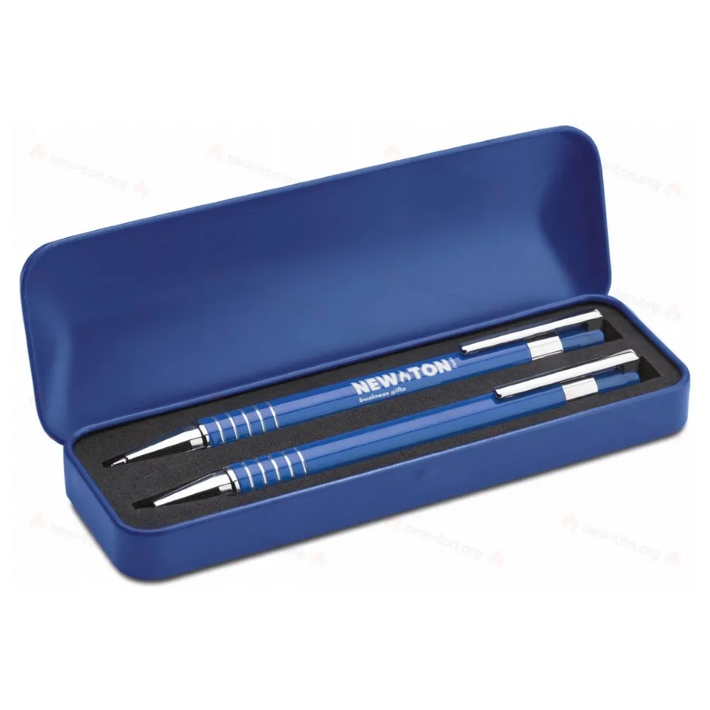 Набор: алюминиевая шариковая авторучка и механический карандаш в металлической коробке подходящего дизайна.