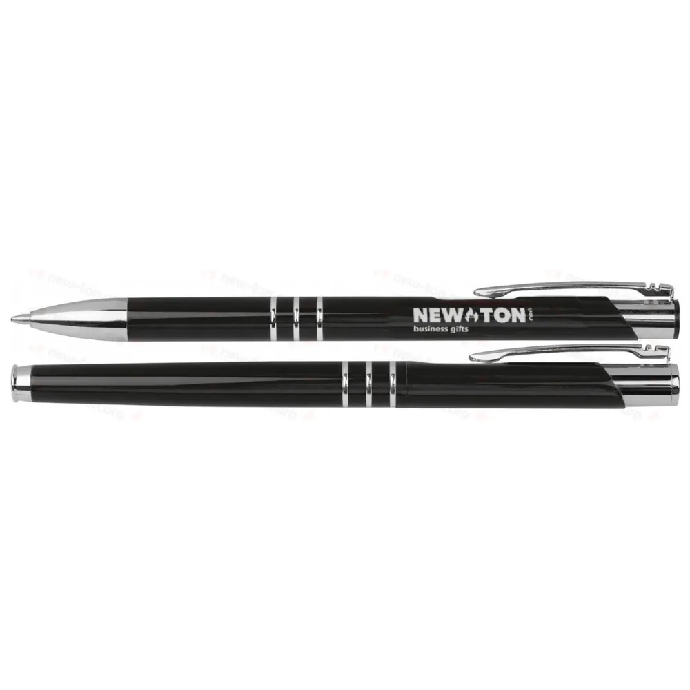 Письменный алюминиевый набор, состоящий из ручки и ручки-роллера, в комплекте с акриловым футляром. Логотип можно разместить под клипом.