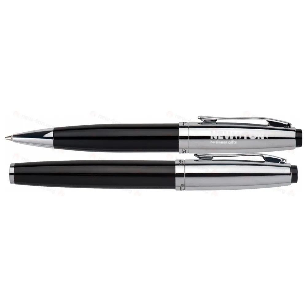Письменный набор из коллекции Ferraghini. В его состав входят ручка и ручка-роллер в элегантном, чёрном футляре. Оба пишут синим цветом.
