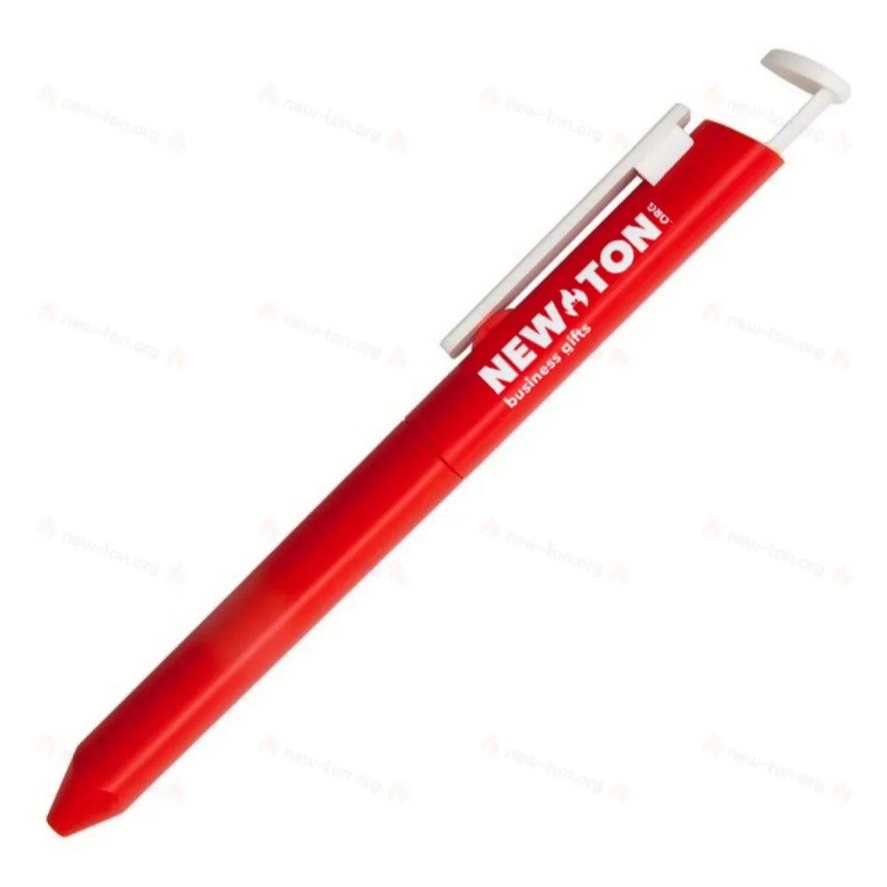 Пластиковая шариковая ручка с подставкой для мобильного телефона. Вы включаете его вращением. Поставляется с синим стержнем.