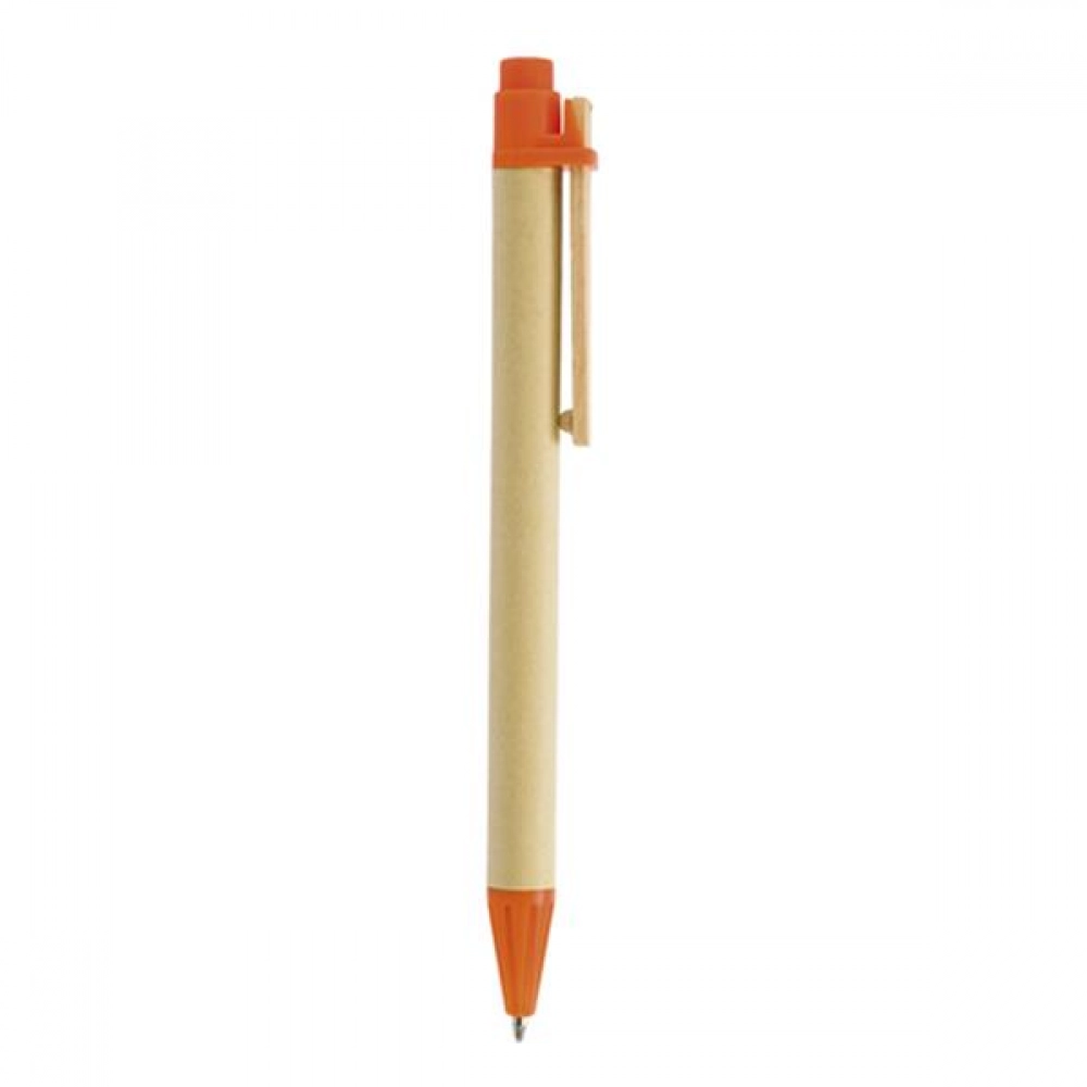 Ручка из переработанного картона с деревянным зажимом, вставным механизмом, пишет черным цветом.