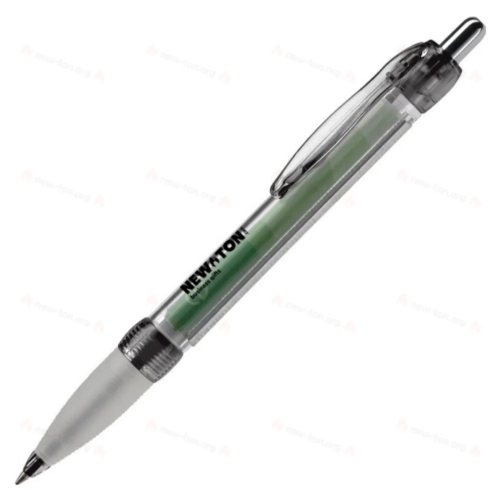 Прозрачная шариковая ручка с резиновым держателем. Полноцветная печать на обеих сторонах баннера, стандарт X20: синие чернила. Также возможно нанесение отпечатка на корпус или клипсу. Срок доставки составляет примерно шесть недель.