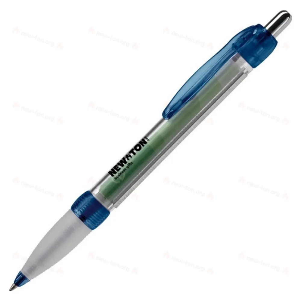 Прозрачная шариковая ручка с резиновым держателем. Полноцветная печать на обеих сторонах баннера, стандарт X20: синие чернила. Также возможно нанесение отпечатка на корпус или клипсу. Срок доставки составляет примерно шесть недель.