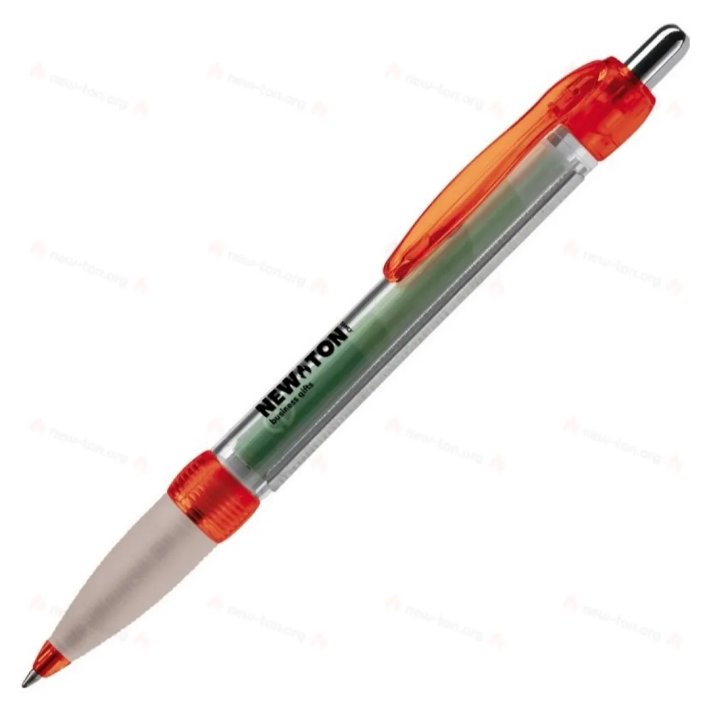 Прозрачная шариковая ручка с резиновым держателем. Полноцветная печать на обеих сторонах баннера, стандарт X20: синие чернила. Также возможно нанесение отпечатка на корпус или клипсу. Срок доставки составляет примерно шесть недель.