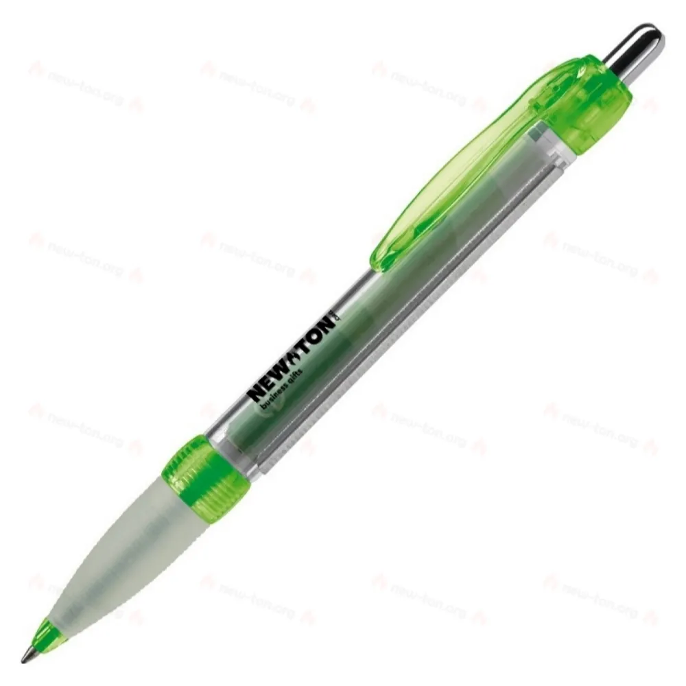 Прозрачная шариковая ручка с резиновым держателем. Полноцветная печать на обеих сторонах баннера, стандарт X20: синие чернила. Также возможно нанесение отпечатка на корпус или клипсу. Срок доставки составляет примерно шесть недель.