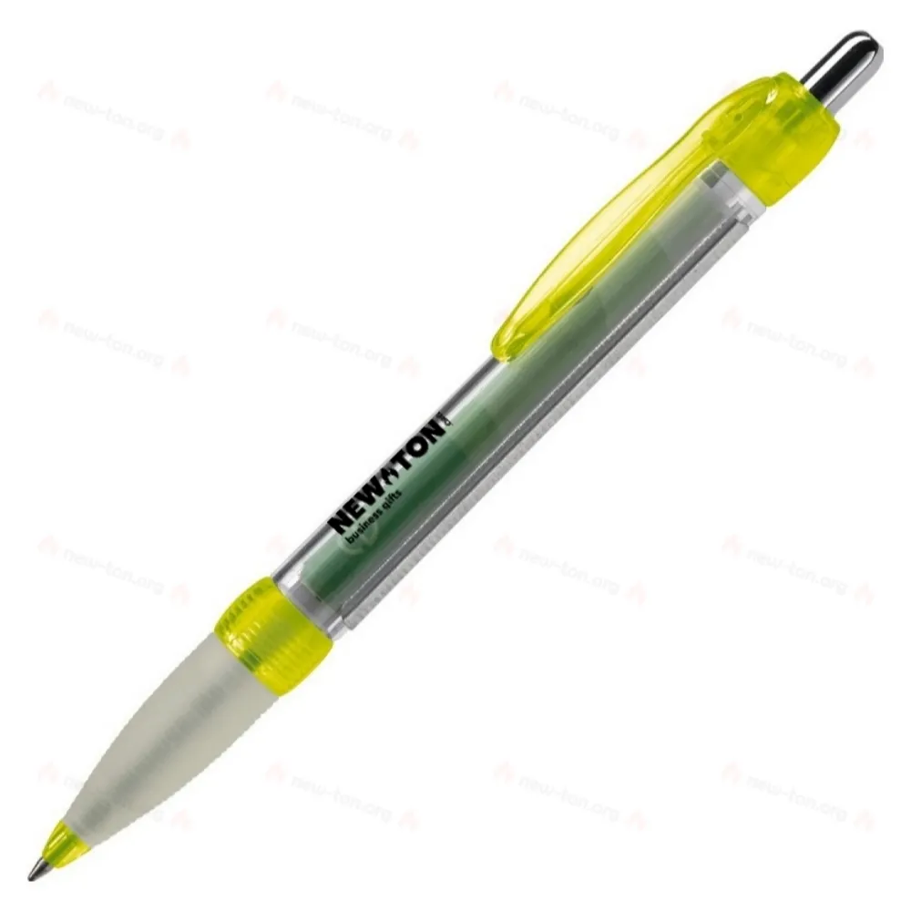 Прозрачная шариковая ручка с резиновым держателем. Полноцветная печать на обеих сторонах баннера, стандарт X20: синие чернила. Также возможно нанесение отпечатка на корпус или клипсу. Срок доставки составляет примерно шесть недель.