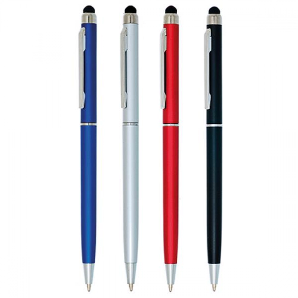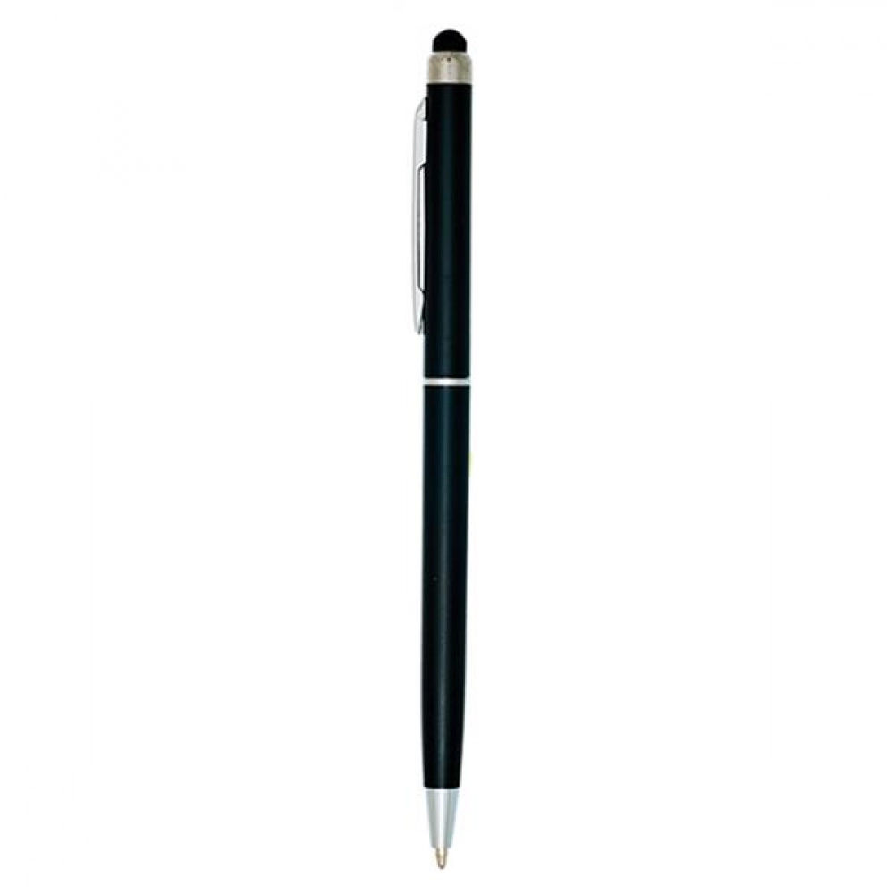 Пластиковая ручка с ластиком для работы с сенсорными экранами, металлическая клипса с вращающимся механизмом, пишет черным цветом.