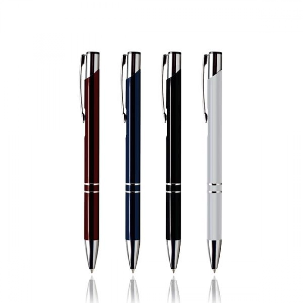 Пластиковая шариковая ручка с металлическим зажимом и вставным механизмом, пишет черным цветом.