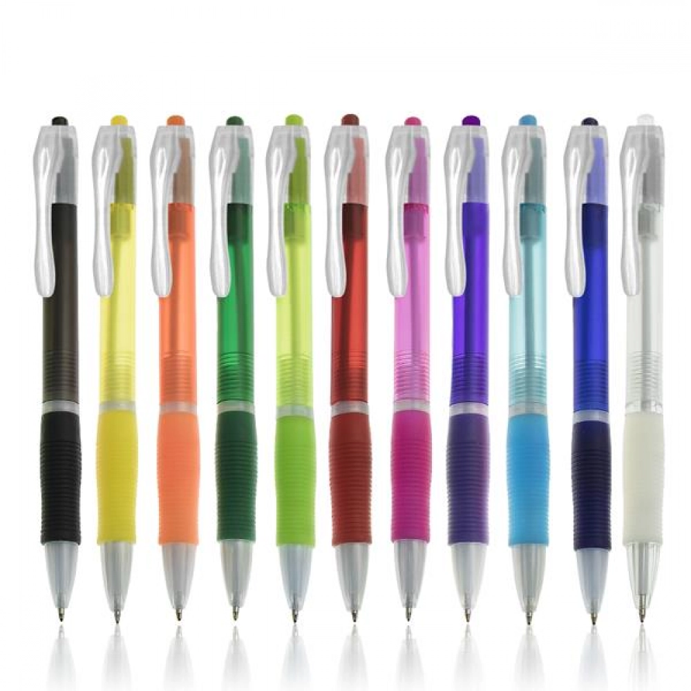 Пластиковая шариковая ручка с эргономичной ручкой и механизмом push-in, пишет черным цветом.