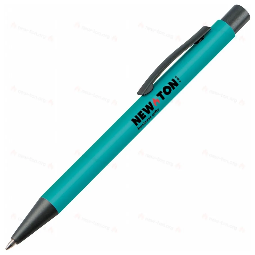Пластиковая ручка с синими чернилами, цветным корпусом и металлическим клипом.