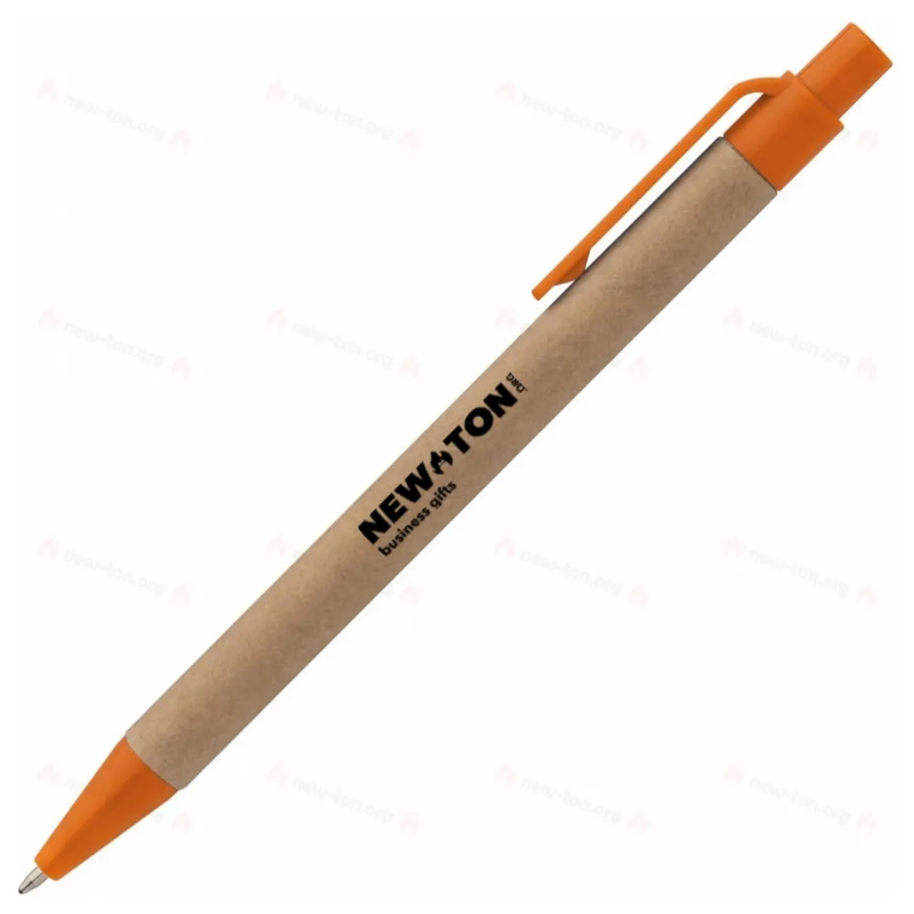 Шариковая ручка из картона из вторичного сырья. Имеет синий стержень. Логотип может быть помещен под клипом.