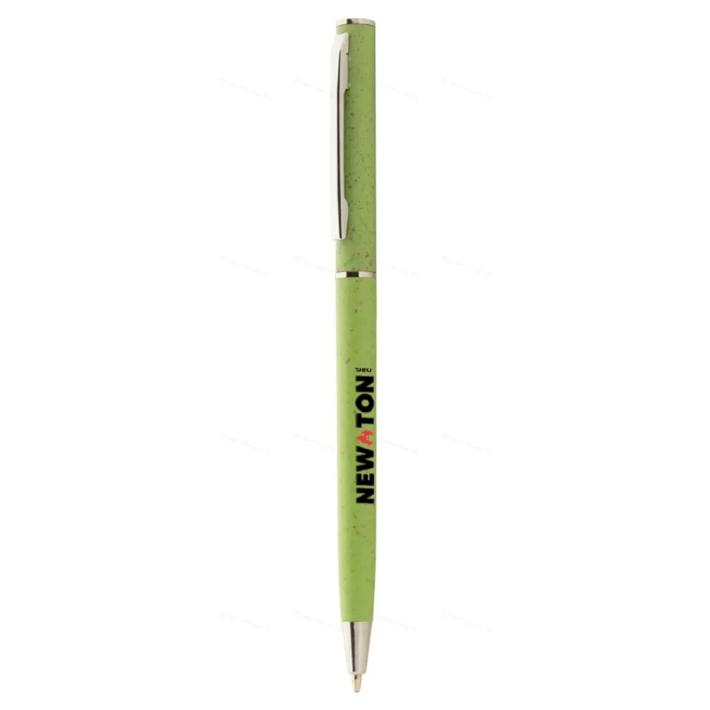 Экологическая ручка-шариковая ручка из пластика, изготовленного из пшеничной соломы, с хромированными деталями. С синим заправочным стержнем.