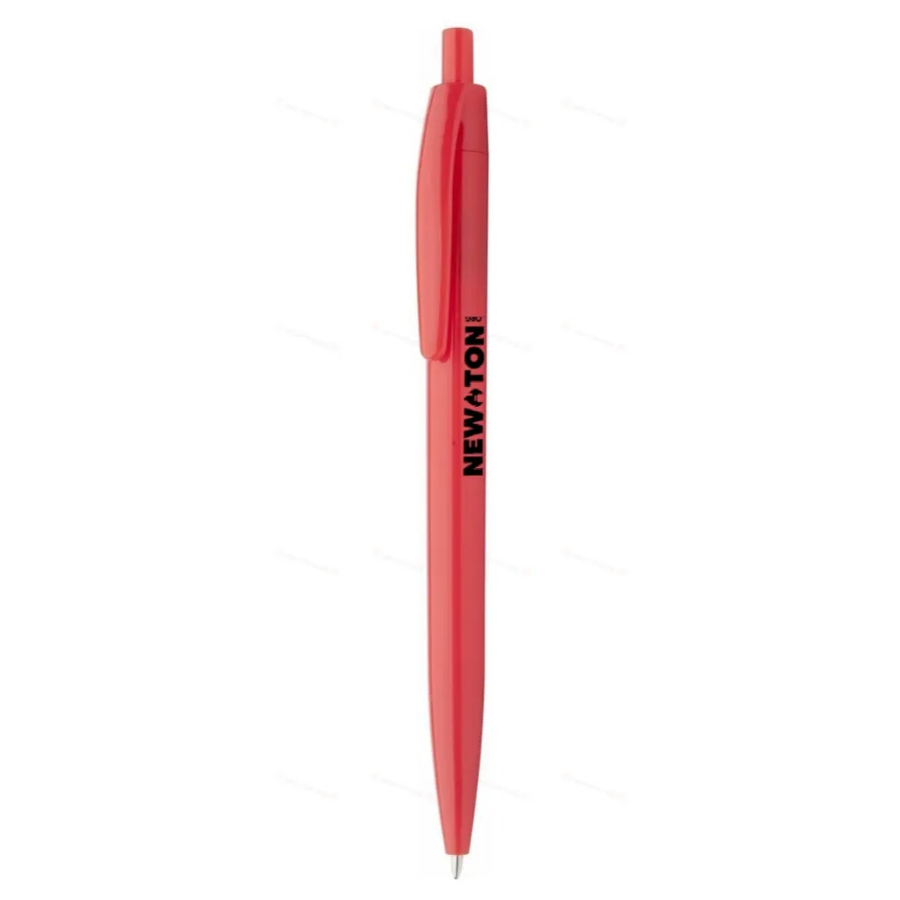 Цветная пластиковая шариковая ручка с синим стержнем.