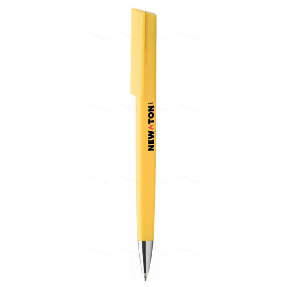 Пластиковая шариковая ручка с хромированным наконечником и верхом. С синим стержнем.