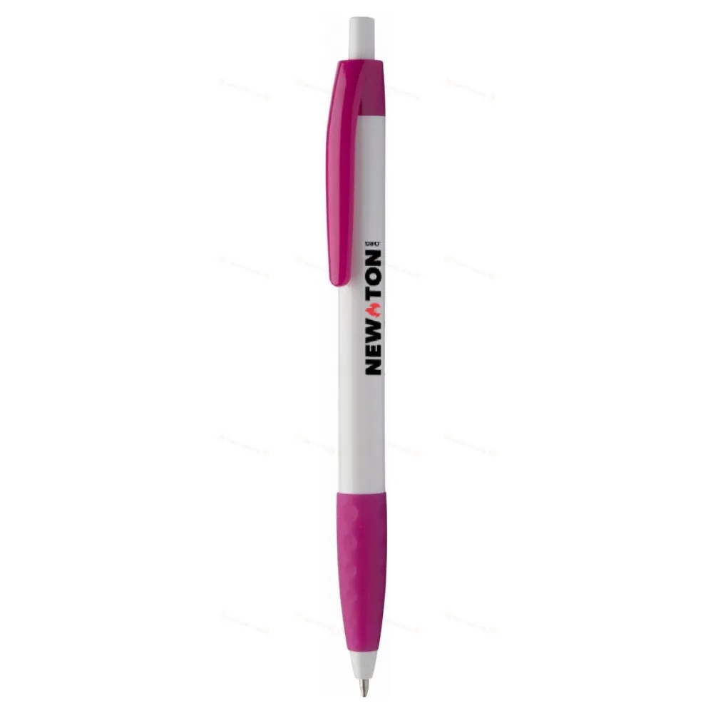 Пластиковая шариковая ручка с цветным резиновым упором. С синим стержнем.