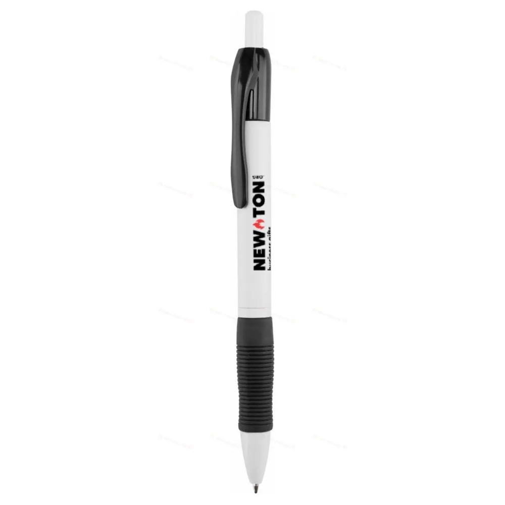 Пластиковая шариковая ручка с цветным клипом и ручкой. Поставляется с синим запасным стержнем.