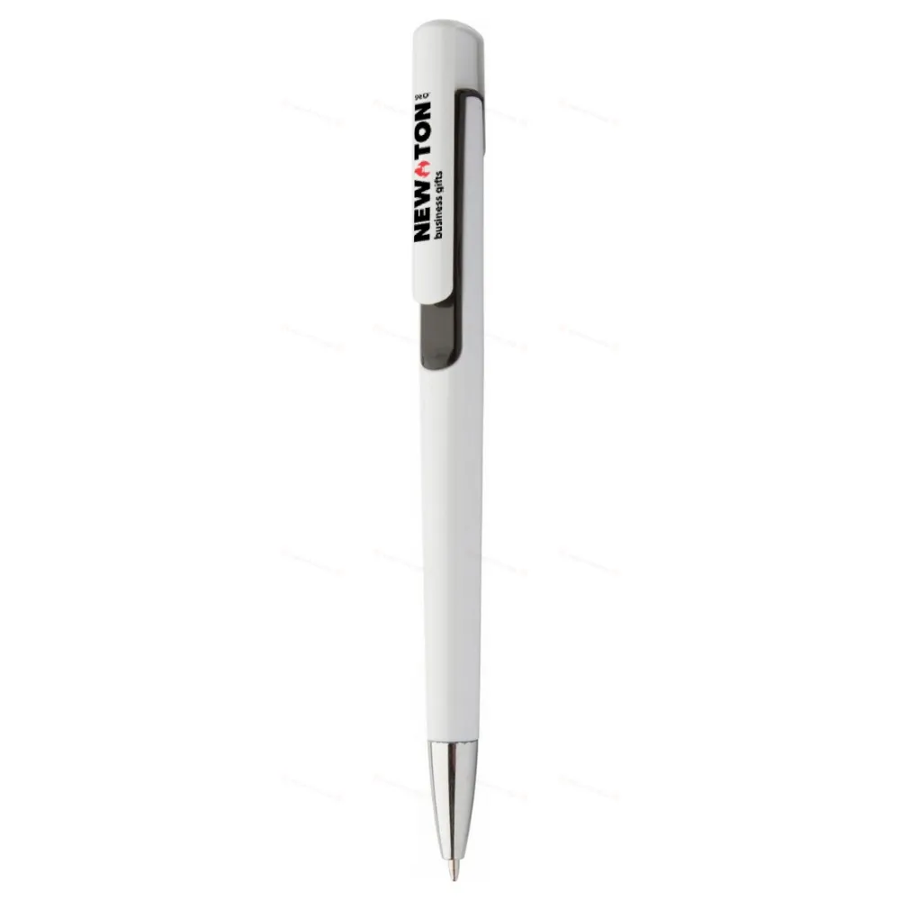 Пластиковая шариковая ручка с цветным декором и хромированным наконечником. С синим стержнем.